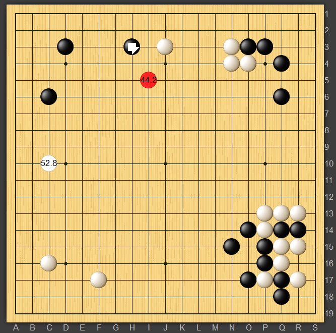 上図はAIの推奨ですがやはり黒3としっかり繋いでいますね。打ち込みも黒の厚みがバックにあるので黒7の方が良かったですね。