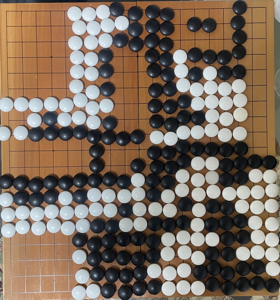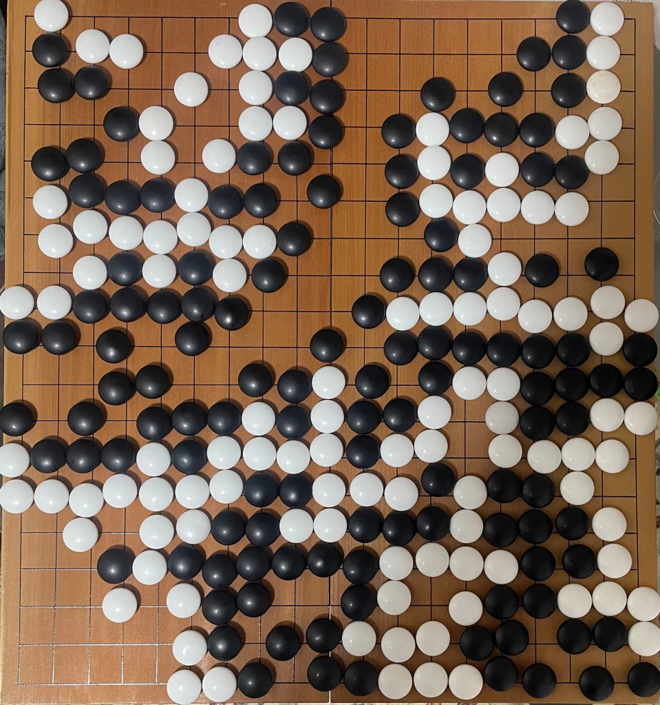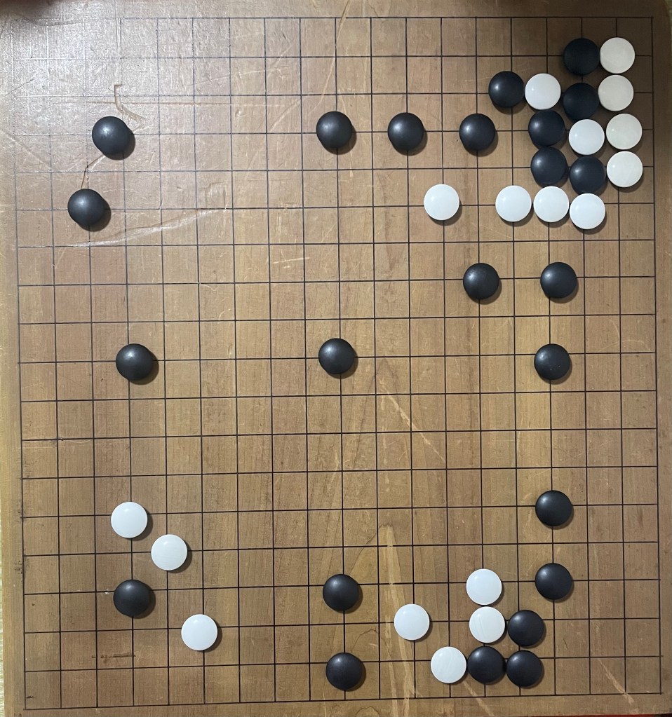 上図が終局図となります。終盤左上の対応を間違えて隅が取られてしましたが中央と繋がることができれば地もまとまって黒の勝利だった様に思います。