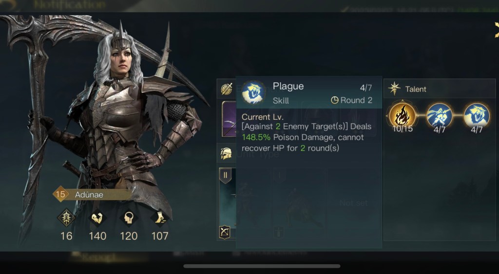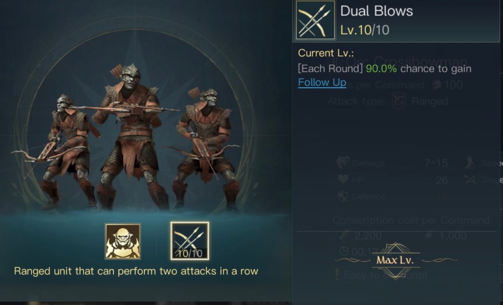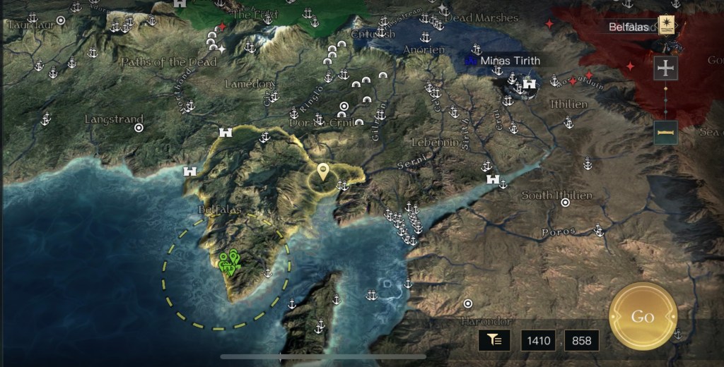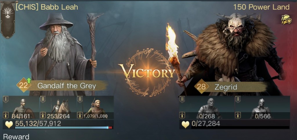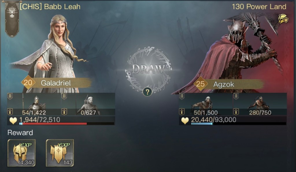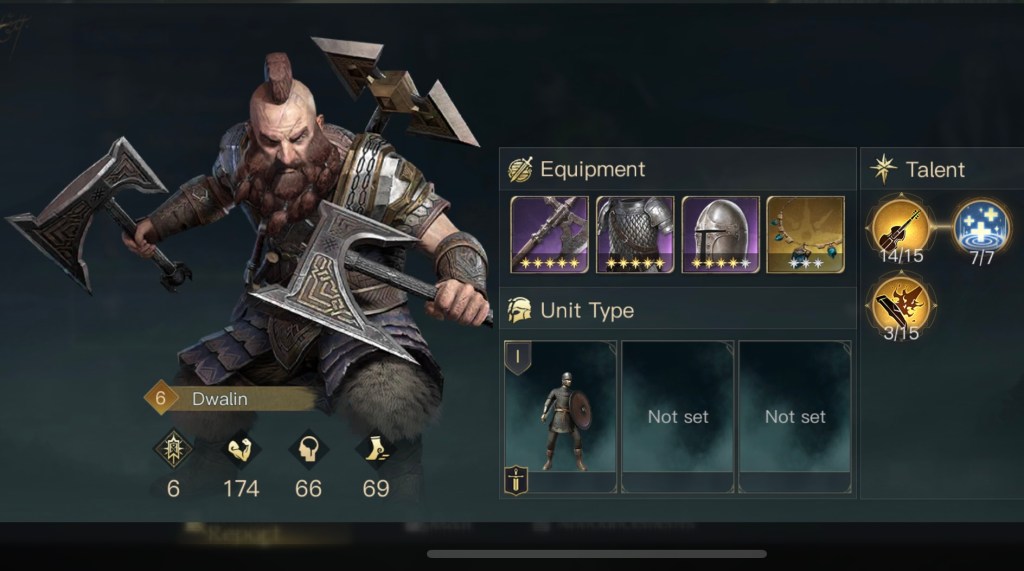 初期位置以外にも不安要素がありまして、まずはガンダルフの装備とスキルです。遠隔特化の装備を強化中で付けているのですが、ゴンドールではしばらく遠隔部隊が使えません。後々交換するのも億劫だと思い最初から装備させていました。あとスキルは本来は灰色の魔法使いをMAXにするのが良いのですが対人戦の際に変更する必要があります。スキルの振り直しはgemが必要なのでこちらもMAXにはしていませんでした。