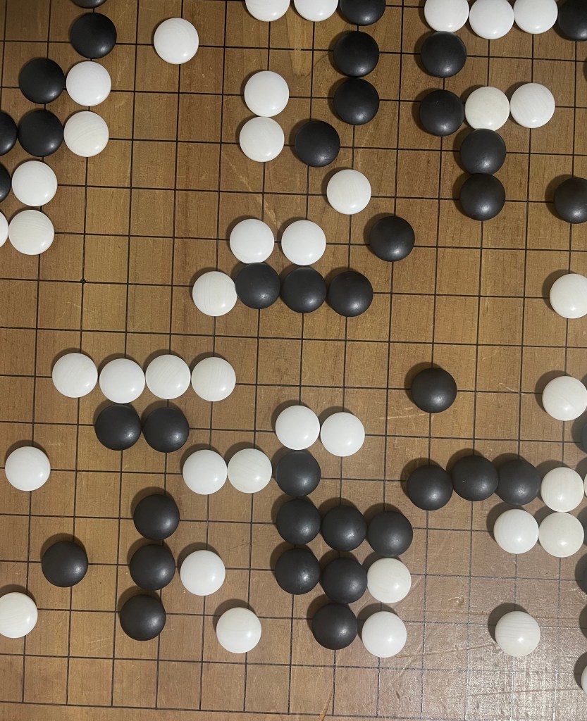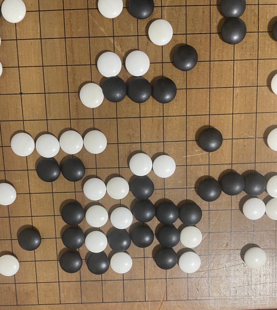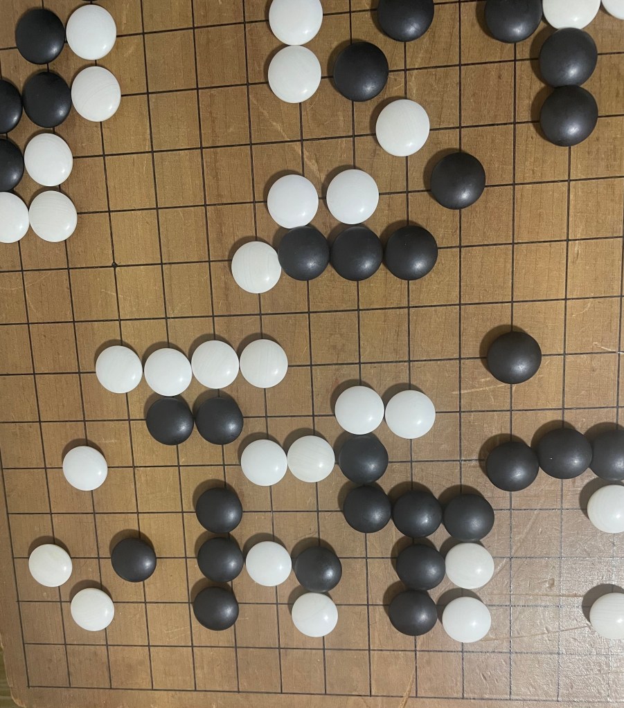 意外と九子局より五子局の方が打ちやすそうでした。九子局だとすぐに石が接近して混乱してしまうのかもしれません。置石を攻めに生かすって簡単に言っても難しいですよね。