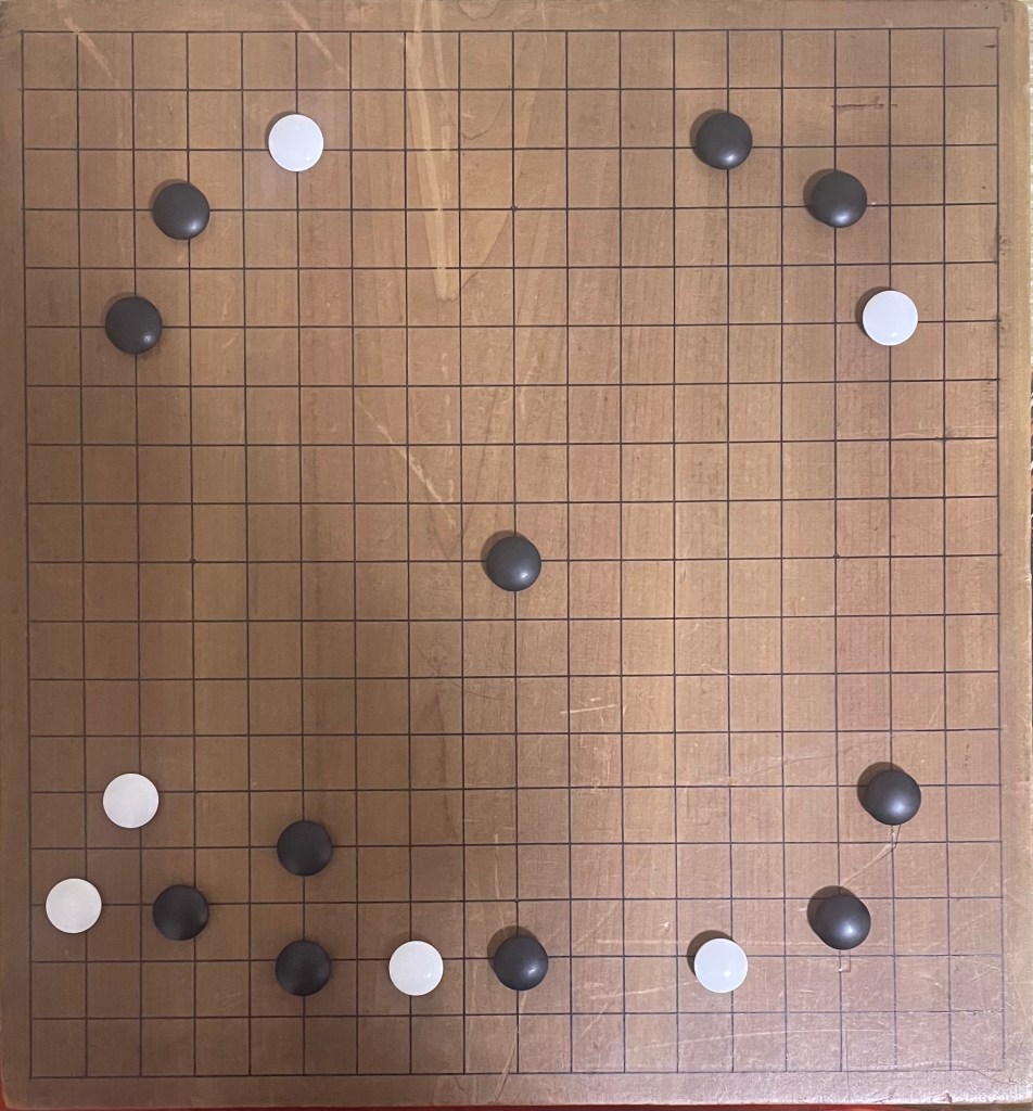 今回は妻の希望で本当に危ない所は教えるという条件付きで五子局です。五子局の方が布石の感覚や辺の戦いは上手くなるような気がします。九子局だと辺にも石があって布石はすっ飛ばされている様に感じます。