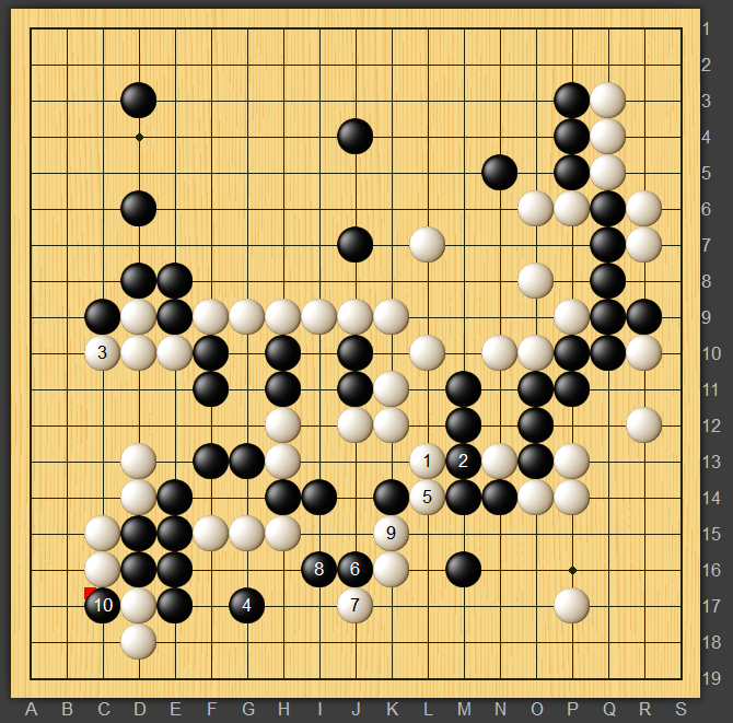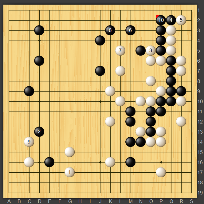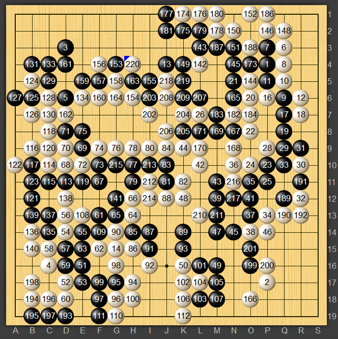 最後は相手の錯覚もあり白220の両アタリで上辺の黒地が破れて差がついたと思います。それがなくても少しは勝っていたのではないかと思います。