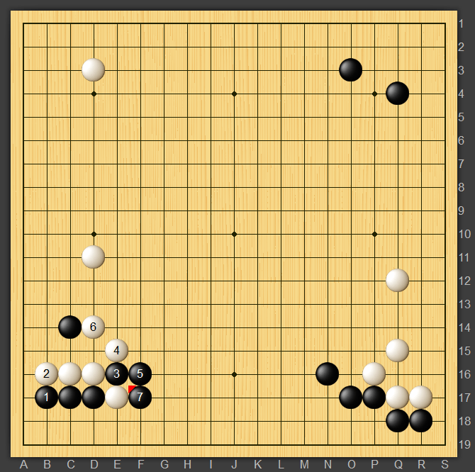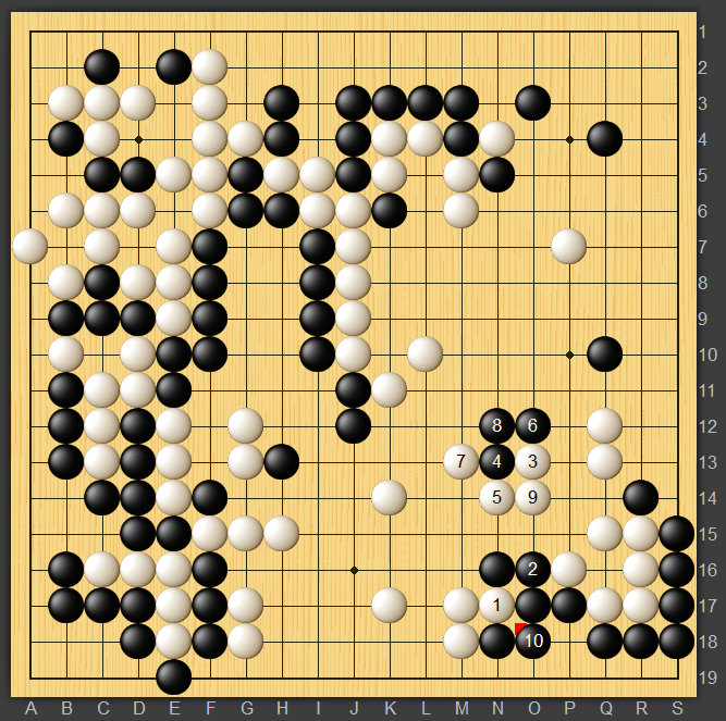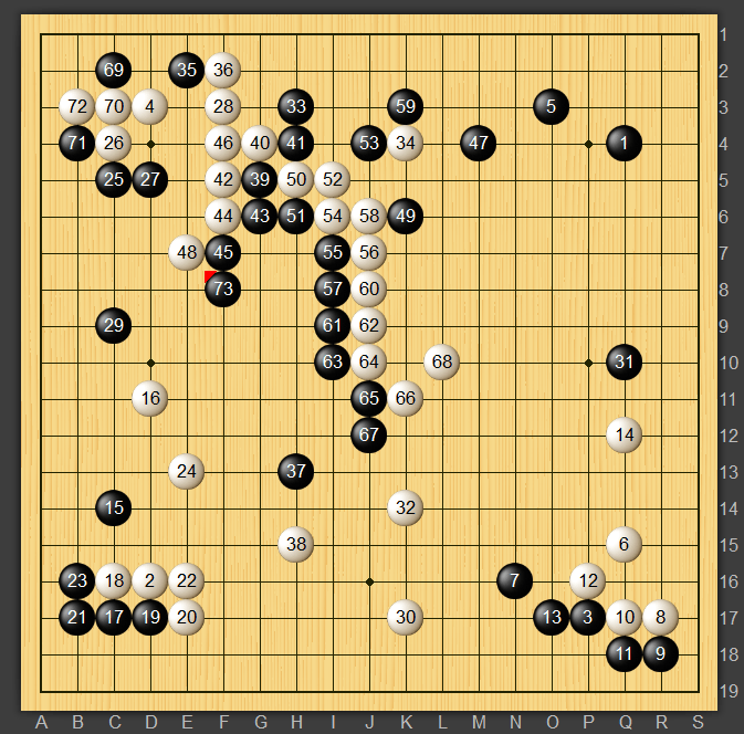 私の黒番で右上隅の子ゲイマジマリからスタートしました。右下隅では白は手早く治りましたね。