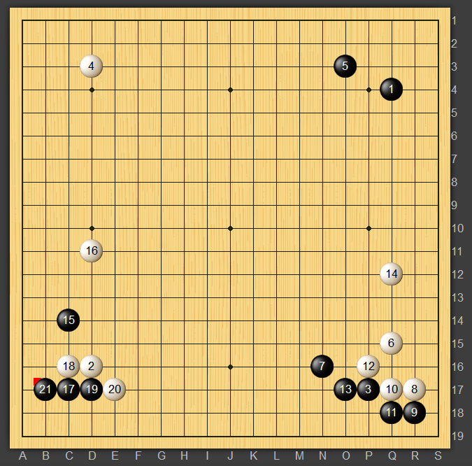 白20と跳ねてきましたね、これは黒21のサガリでワタれているはずです。
