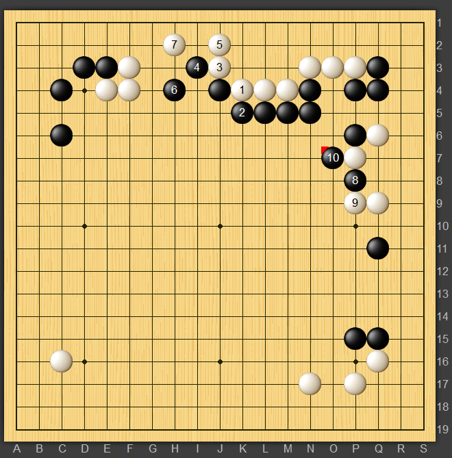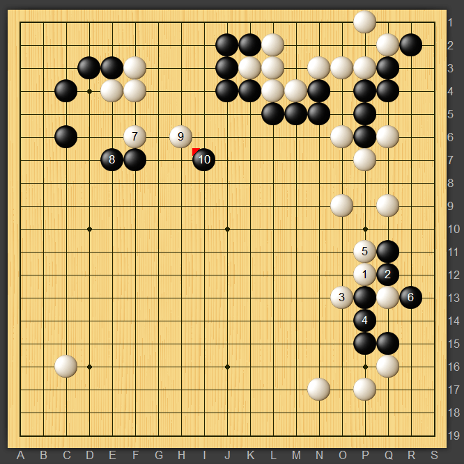 右辺を厚くして白7から動き出すのが良かった様です。右辺は納得ですが白7,9は私では取られる気しかしません笑ただもうそれくらいの形勢ということなのでしょう。