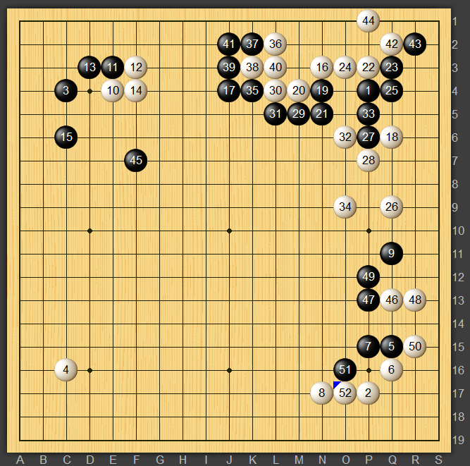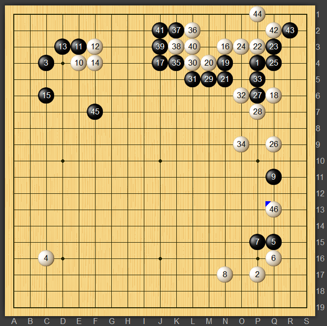 白46と打ち込んだものの下辺へワタルことになってしまいさらに黒が厚くなってしまいました。嫌な予感しかしませんね。