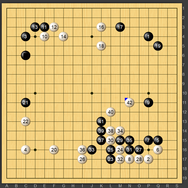 こんばんは、Babbです。今回は初めて野狐でAIと当たったのでその対局を紹介したいと思います。四段のAIって運営が打ち子としてレベル下げて用意しているのでしょうか。それとも個人で開発している人が自分のAIで打たせているのでしょうか。後者な気がしますが実際のところはわかりません。