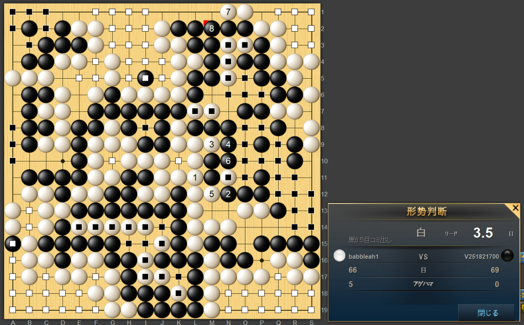 悔いの残るAIとの初対局となりました。