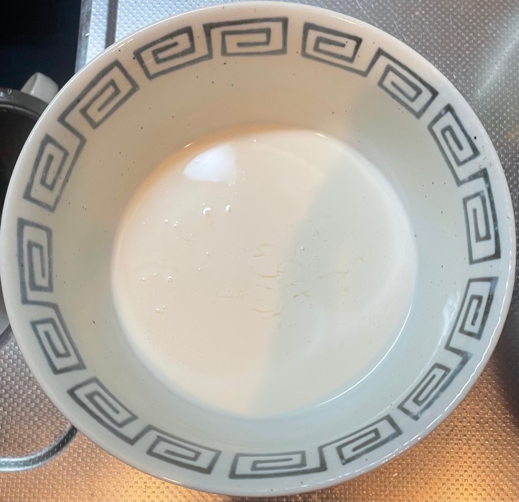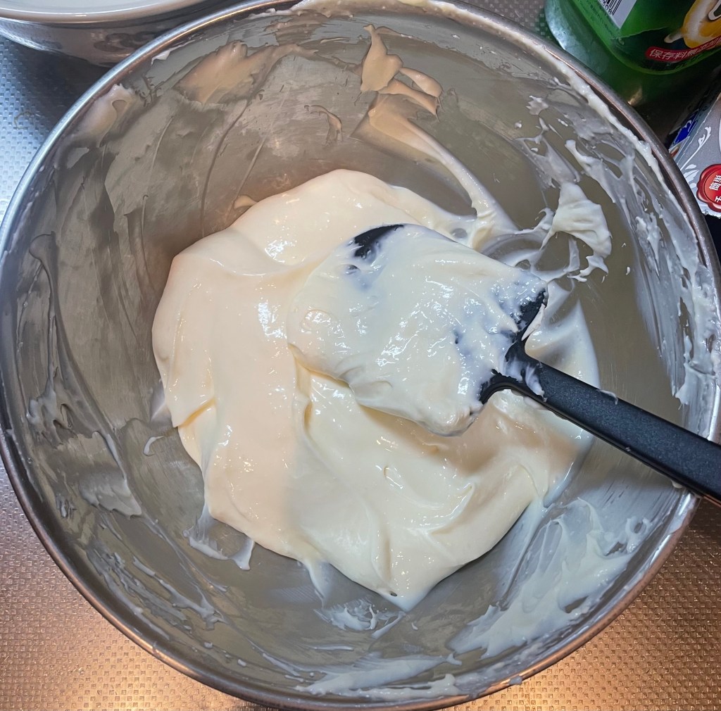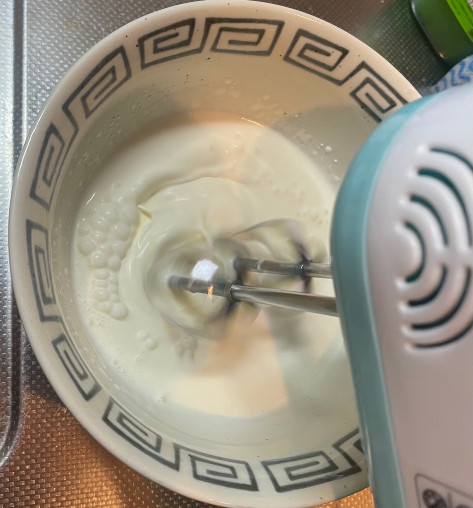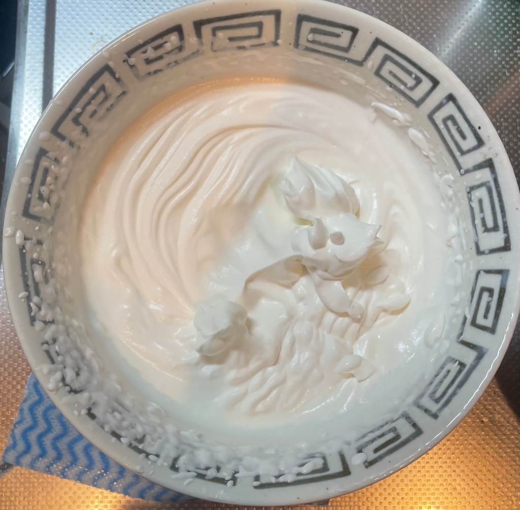 そして生クリームを用意。ボウルが足りないのでどんぶりにどーん
