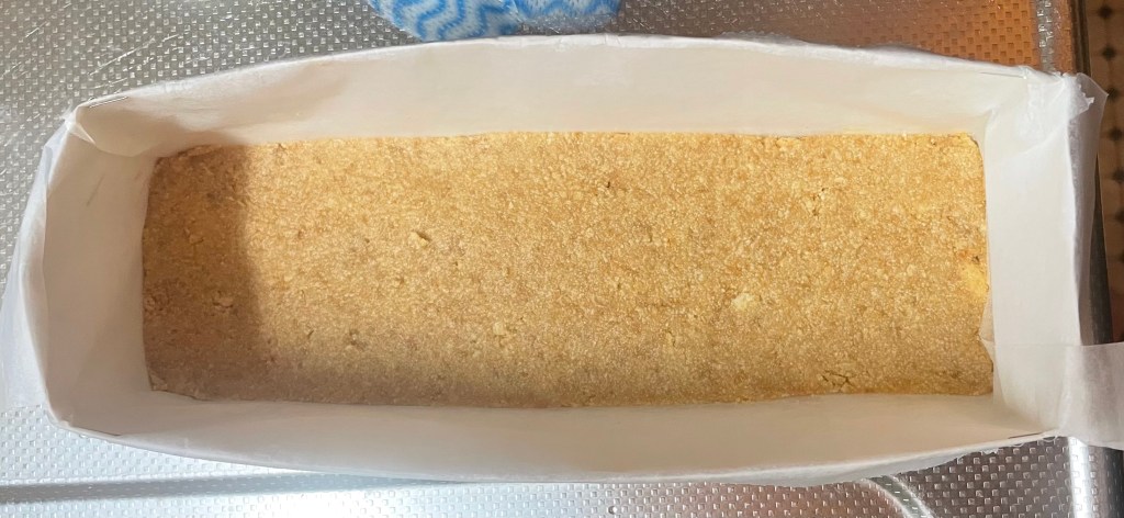 それとは別にクッキーをクッキーを砕いたものを牛乳パックに敷き詰めます。