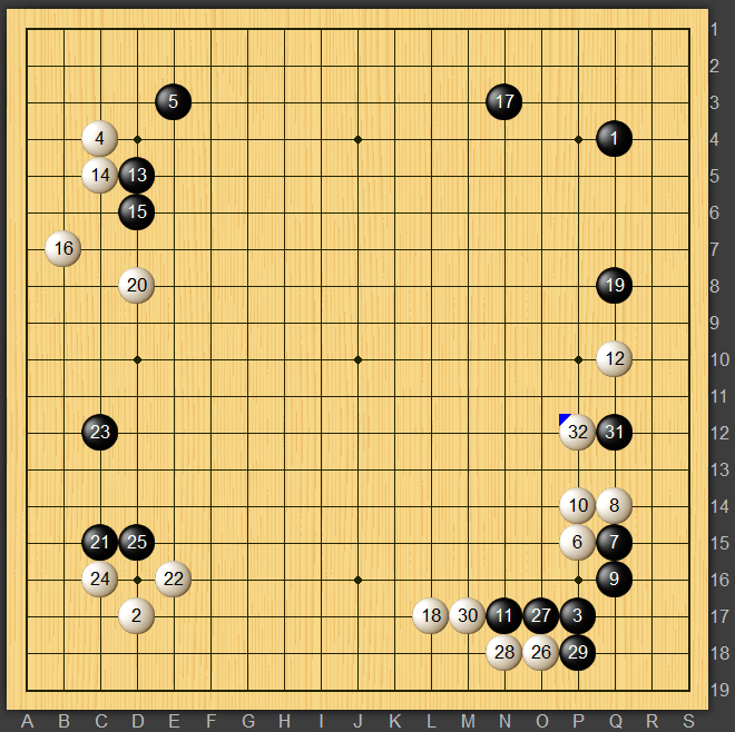 ただシチョウ関係や、右辺の形の変化、右上隅の打ち込みに対する対応。怪しい厚み?の活用等勉強になることが多かった一局でした。