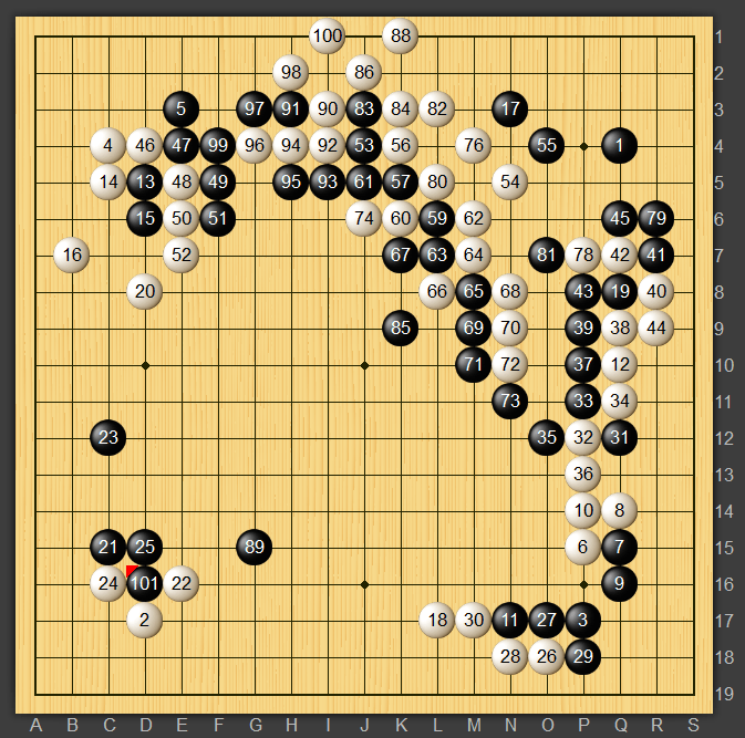 ちなみにAIは普通に上辺受けてしっかり地を確保。普通の手がやっぱり一番強いんでしょうねえ。筋悪には厳しい現実。