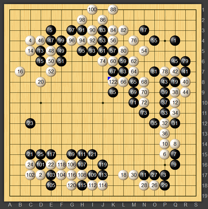さて白は122と直接動き出してきました。ここは少しチャンスが出てきたかなと感じました。逃げてくれれば上手いこと打てばポイントを上げられそうです。