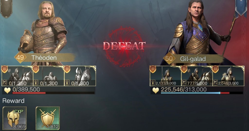 そこで先ほど完封されたセオデンに回避無効の装備をつけて再挑戦してみま