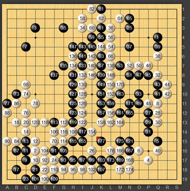 白が中央を動き出してきてくれたのでお馴染みの?泥試合に発展、黒177で中押がちとなりました。